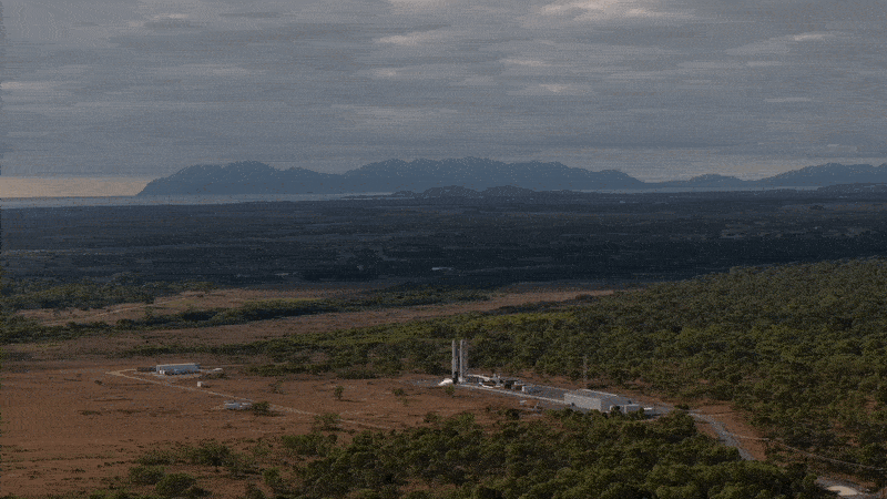 Gilmour Space's Eris rocket slid sideways after its debut launch. (Credit: Gilmour Space)