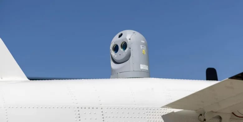 A General Atomics optical communications terminal, installed on an airborne platform, successfully established a data link with a satellite in low Earth orbit using laser-based transmission. (Credit: General Atomics Electromagnetic Systems)