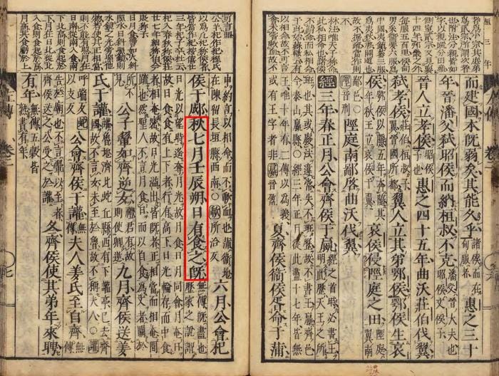 The Spring and Autumn Annals, an ancient Chinese chronicle, preserves humanity’s earliest datable written account of a total solar eclipse, recorded in 709 BCE. It notes: “In autumn, in the seventh month, on the renchen day, the first day of the month, the Sun was totally eclipsed.” The term renchen designates a specific day within the traditional 60-day Chinese calendar cycle. (Credit: National Archives of Japan)